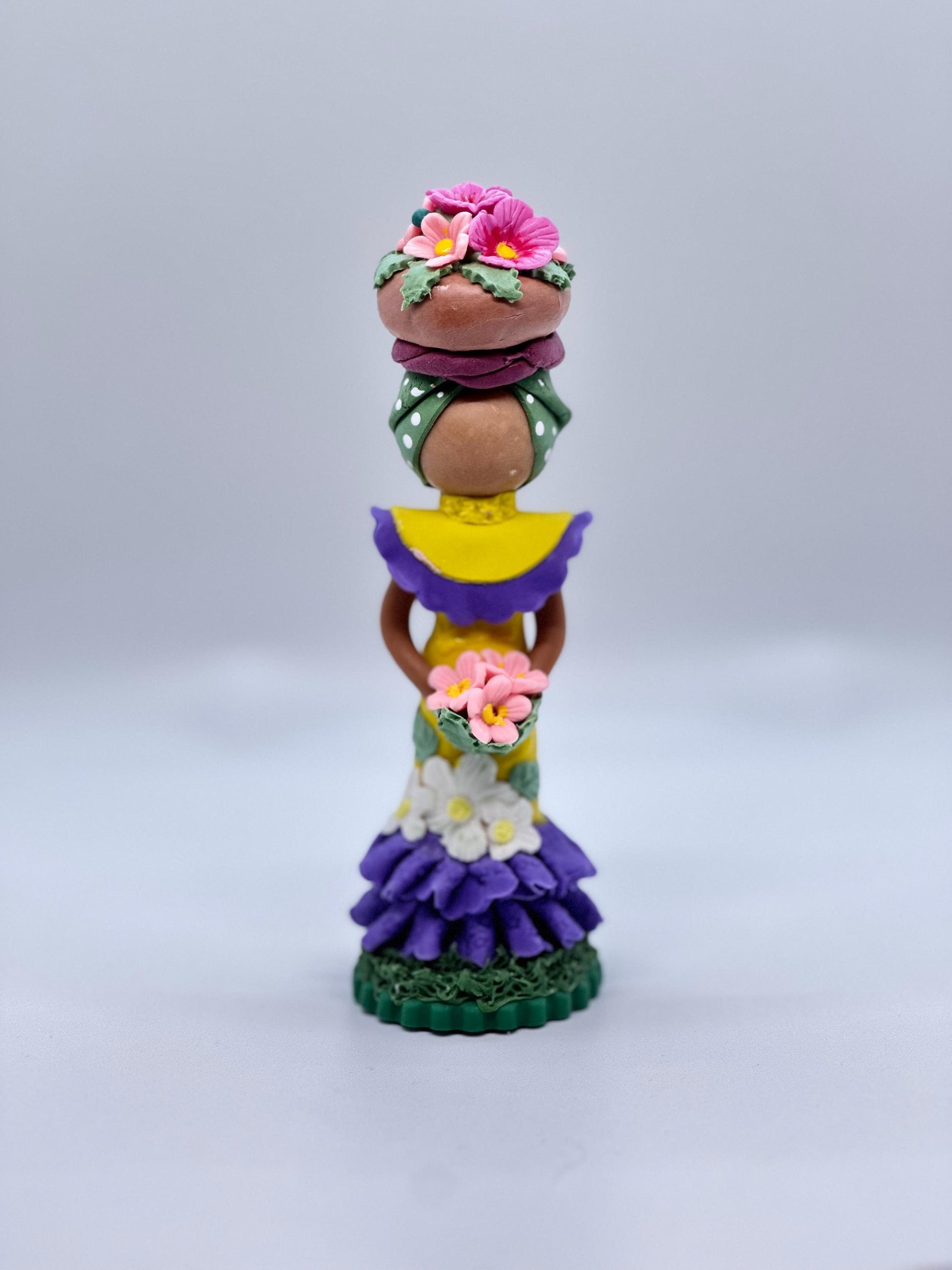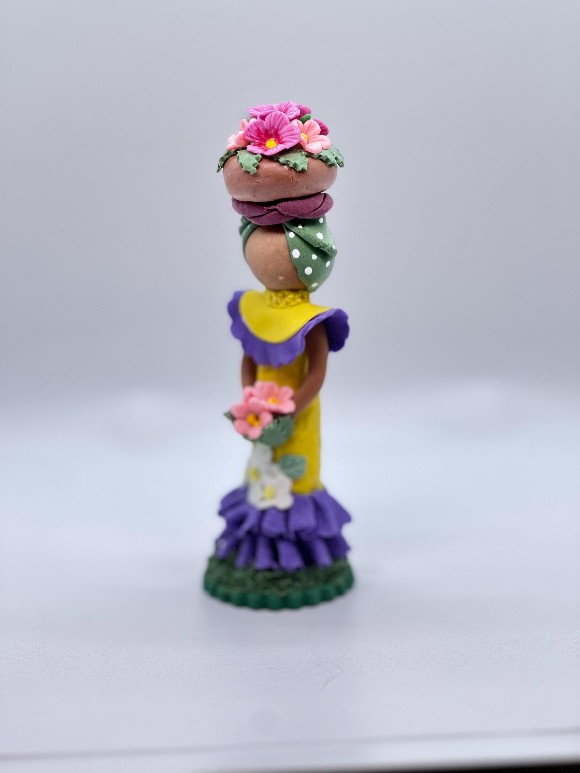 Dominican Souvenir Faceless Doll - Muñeca sin rostro Dominicana, canasta de flores en la cabeza